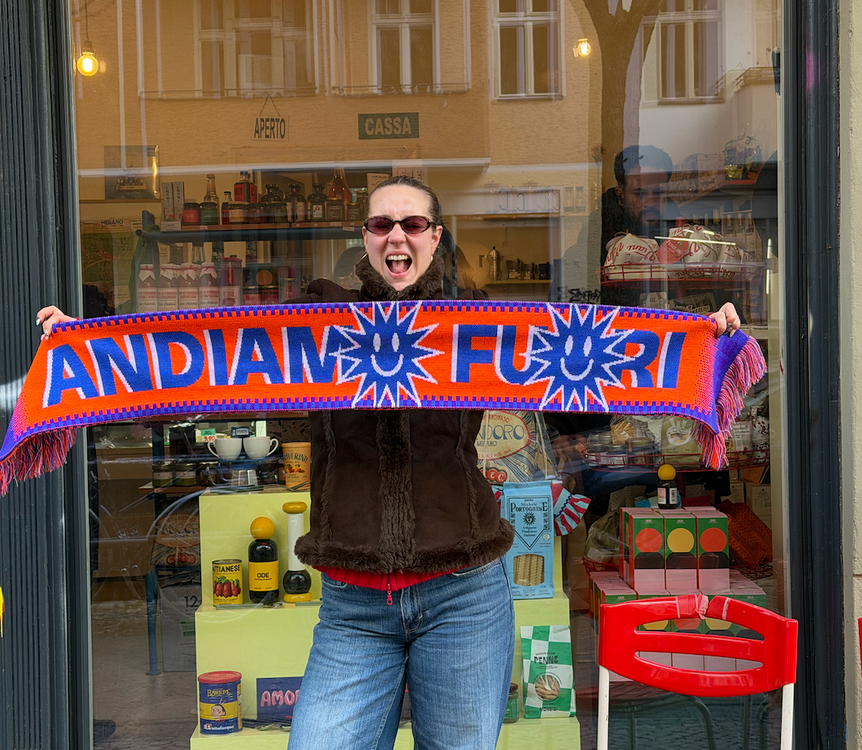 Zeit für einen Warmen Hals und ein warmes Herz beim Rausgehen - mit dem FC Amore Schal „Andiamo Fuori“ von Rausgegangen! 🧣❤️