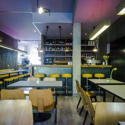 Weil das Picnic schön klar ist, ohne viel Schischi. Wenn ihr also auch auf klares, modernes Design steht, dann wird’s euch hier richtig gut gefallen. Die Stühle erinnern zwar eher an altes Schulinterieur – ist aber ein guter Bruch, der durch gelbe Farbakzente noch abgerundet wird. Kurz gesagt: Sowohl drinnen als auch draußen kann man im Picnic sehr gut sitzen und sich wohl fühlen. Wobei draußen die belebte Barer Straße direkt vorbeiführt. Aber dann hat man auch a bisserl was zum Schauen. Auch nicht schlecht.