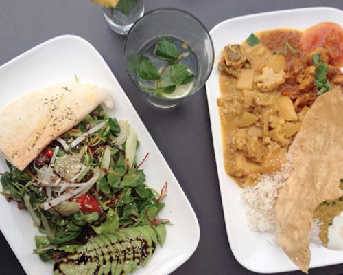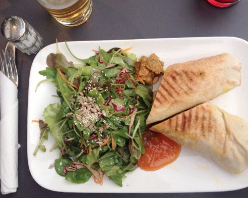 Die Karte ist nicht überladen, aber bei einer Auswahl von verschiedenen Salaten, Currys, Wraps, Dumplings und wechselnden Tagesgerichten sollte für jeden Geschmack etwas dabei sein. Wir haben auf jeden Fall alle etwas gefunden.