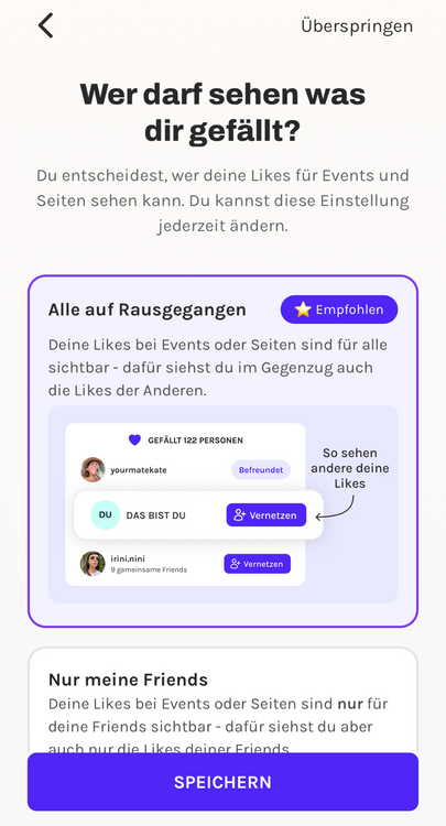 Such deine Leute, folg ihnen und connecte dich – so verpasst niemand, was gerade abgeht. Und ja, du siehst auch direkt, welche Events deine Friends feiern. Inspiration garantiert.