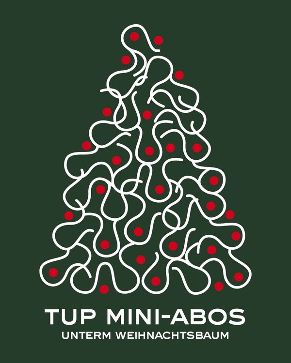 Mit den TUP Mini-Abos beglückst du dieses Weihnachten garantiert die Kulturliebhaber:innen in deinem Umfeld. Hier gibt es was für jeden Geschmack: Ob Schauspiel, Ballett und Musiktheater oder Philharmonie. Wähle das Mini-Abo aus, was am besten zur beschenkten Person passt!