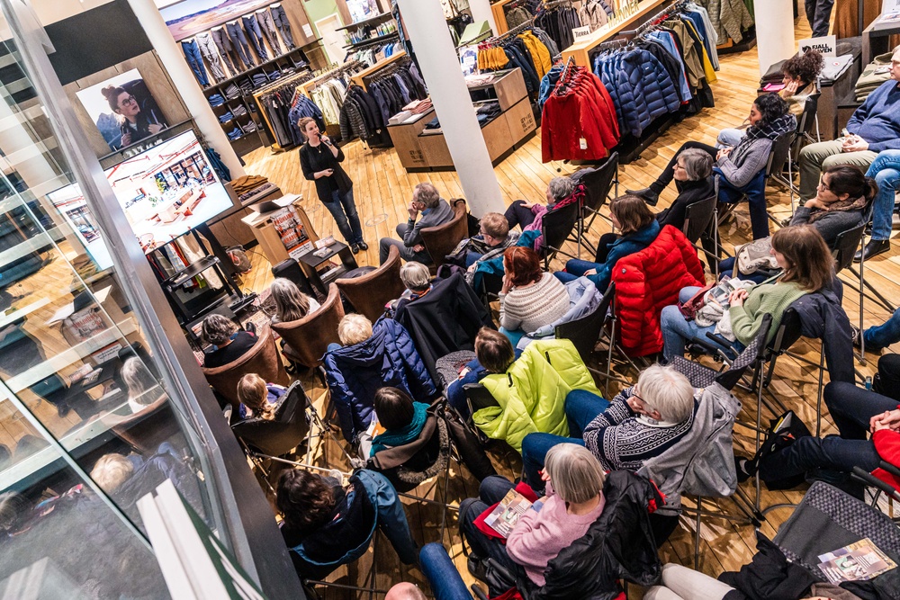 The popular talks take place directly in the store. From late afternoon, the Club Hut - the heart of the branch - is transformed into a place full of stories, encounters and inspiration. Here, travelers talk about their adventures and share experiences that you won't find in travel guides: from trekking tours through Georgia, the challenges of a trip from Tierra del Fuego to Bolivia or cultural subtleties that play a role along the way - such as why the topic of whaling in Iceland is not an ideal conversation starter.